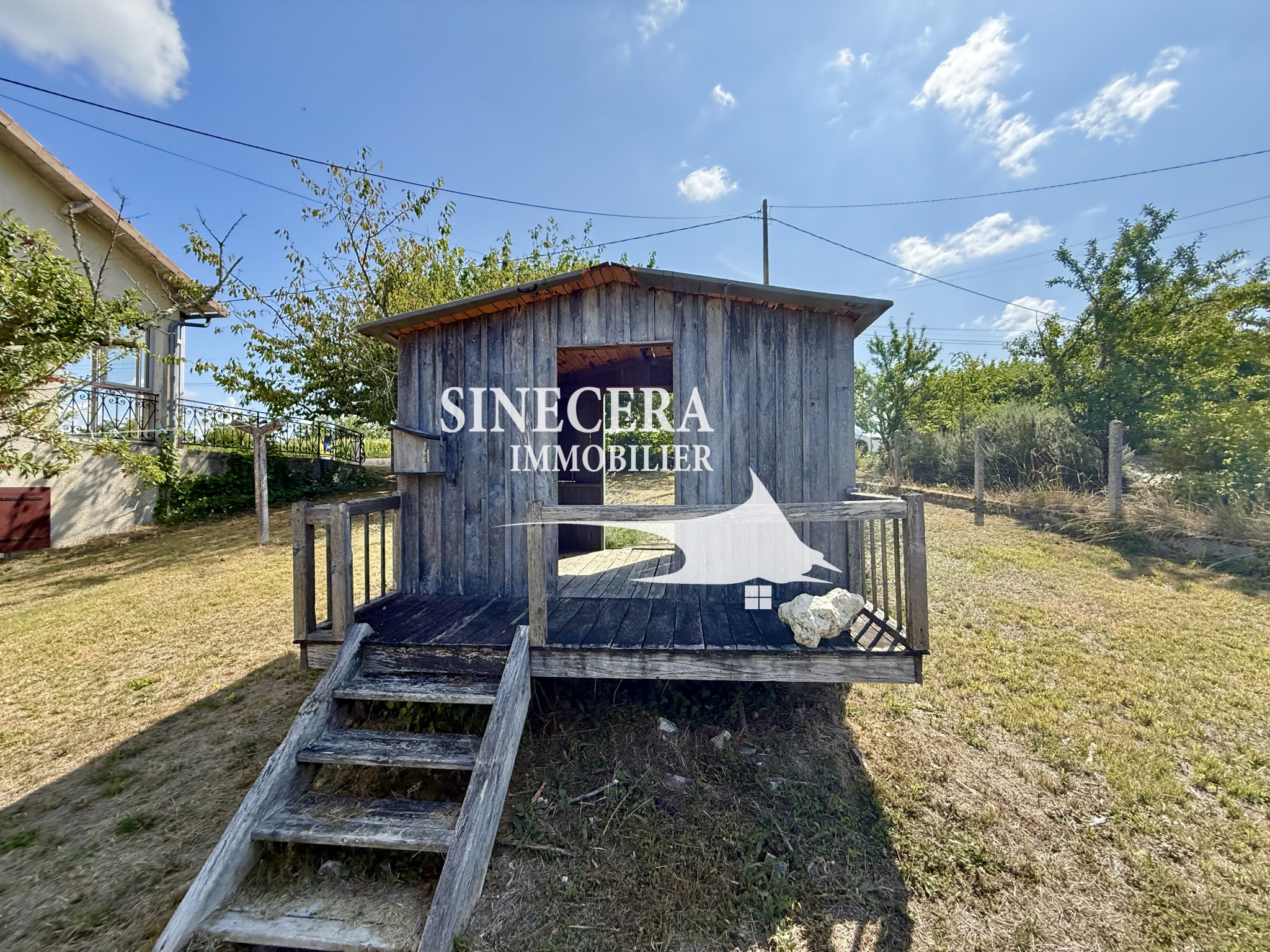 Le jardin est entièrement clôturé, avec portail, et comprend également une cabane. Très belle vue dégagée depuis chaque chambre.