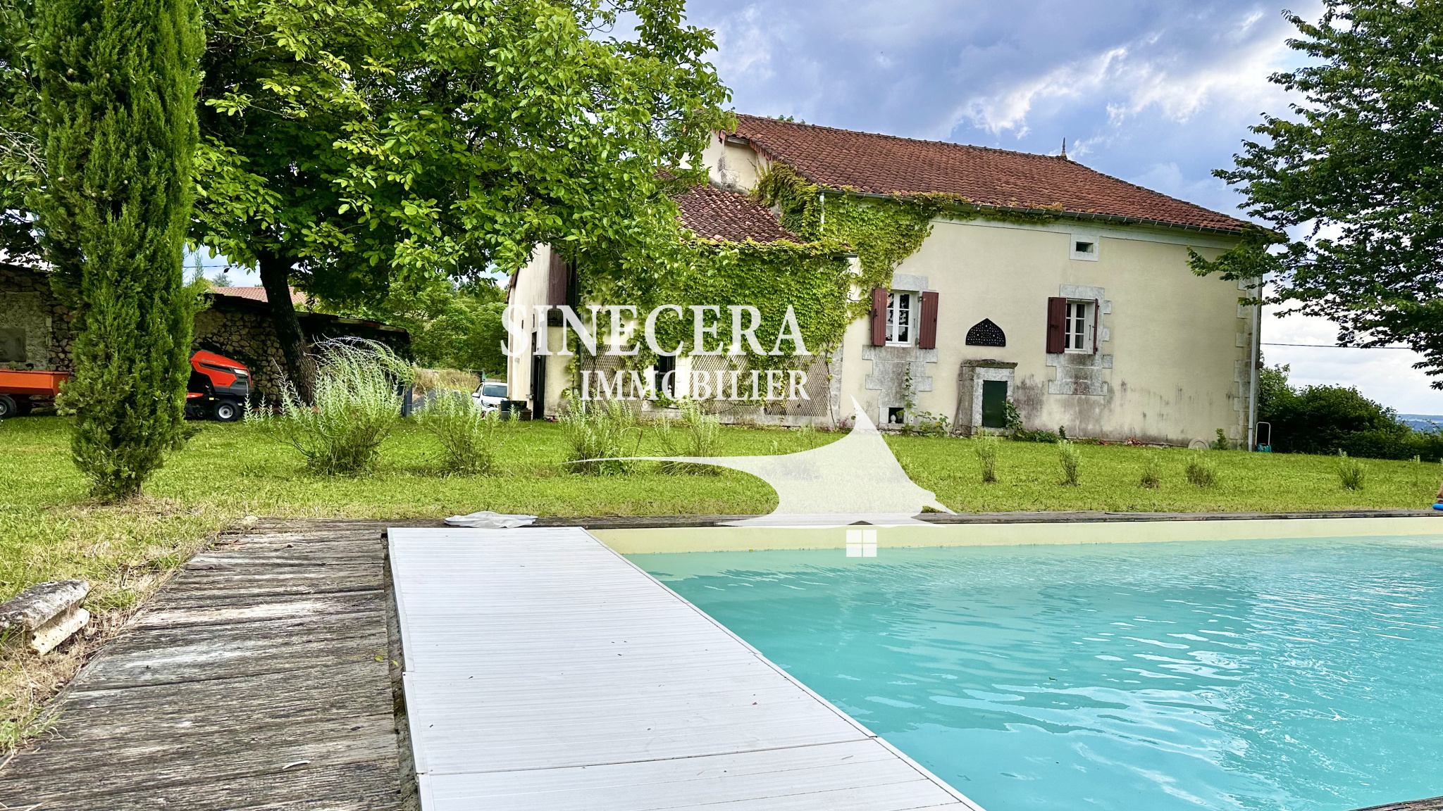 En lisière d'un petit hameau calme, charmante maison ancienne en pierres apparentes avec vue imprenable sur la campagne, bon état d'entretien.Elle comprend une cusine équipée, un grand salon de 38m² avec cheminée en pierres, une cave et atelier de 106m², 3 chambres, une salle d'eau/ wc. Appartement d'une cuisine salle à manger, chambre, salle de bain / wc de plain pied encours de rénovation.Une belle piscine bien exposée avec très belle vue et terrain de 3150m² facile d'entretien. Puits. Dépendances.Rare, à voir rapidement!