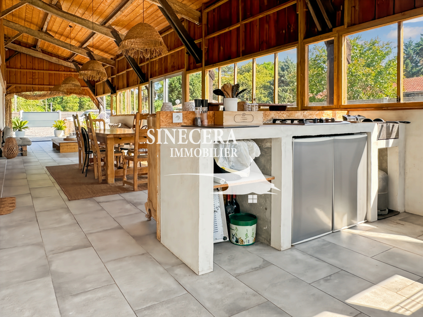 Le tout sur une parcelle arboreée de plus de 1950 m2, piscinable, terrain de pétanque, avec une grande terrasse couverte de 60 m2 environ pour profiter de l'exterieur.