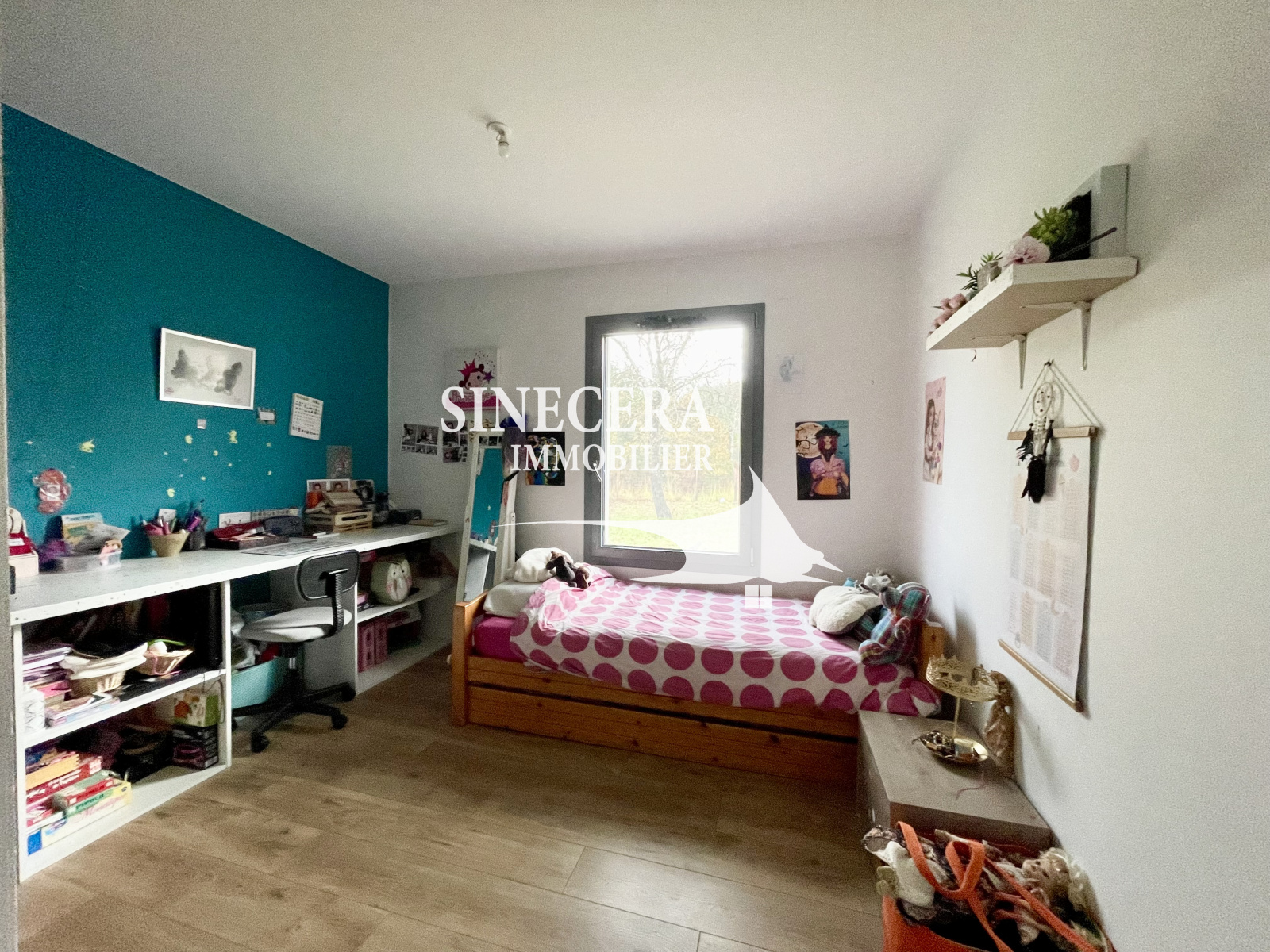 Grande pièce de vie lumineuse de 56m2 exposée sud-est avec baie vitrée galandage et vue sur la forêt, coin bureau avec verrière, cuisine américaine aménagée, cellier. Côté nuit, 3 chambres avec placards, salle de bains avec douche et baignoire, wc séparés. Maison RT2012 avec belles prestations.