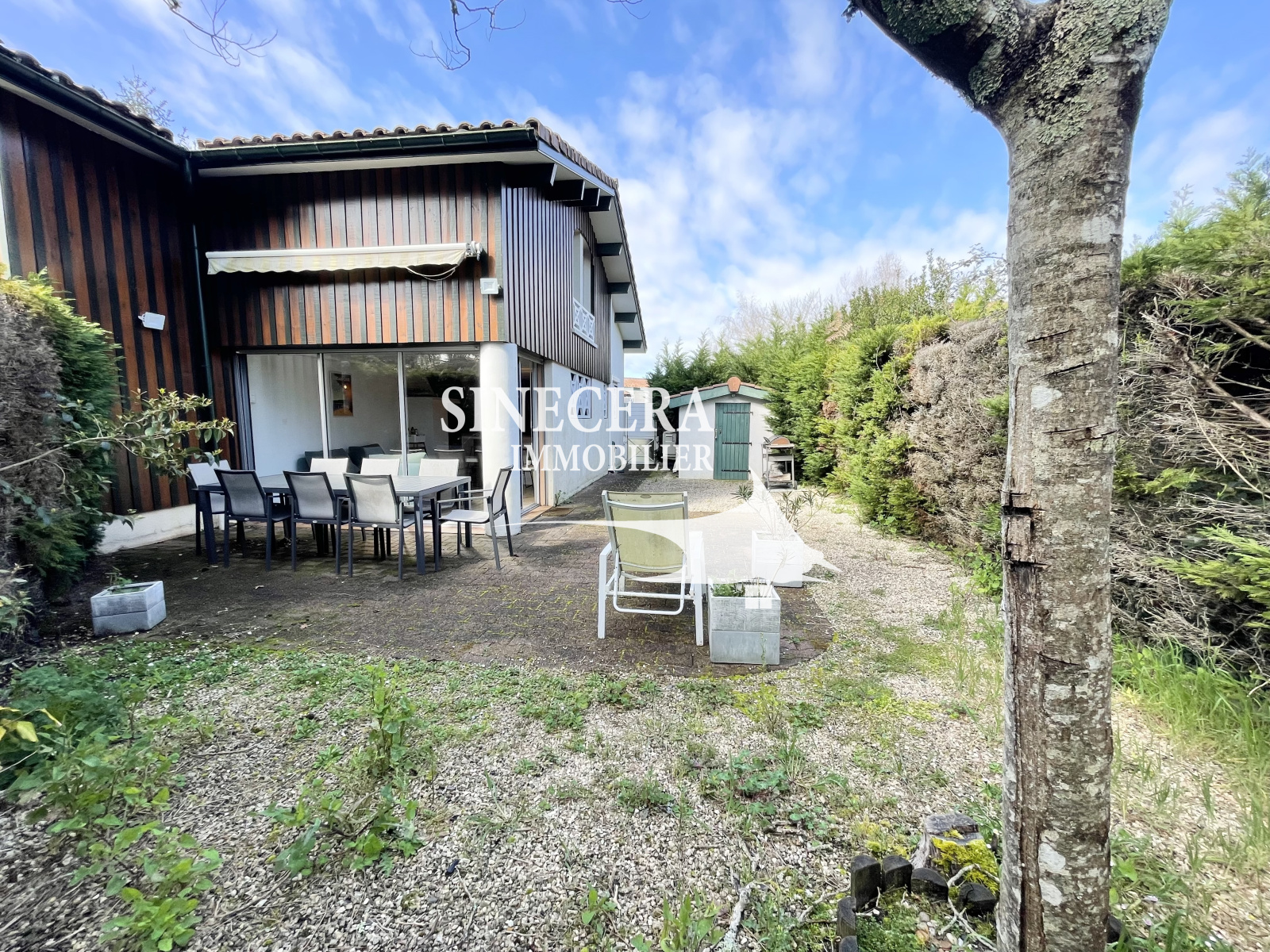 Côté extérieur, un jardin de 80m2 environ entièrement clôturé, abris de jardin, portillon permettant l'accès a un bel espace vert commun ou les enfants peuvent aller jouer en toute sécurité et portillon avec accès parking pour éviter de rentrer dans la maison avec les équipements de plages. Place de parking privative.