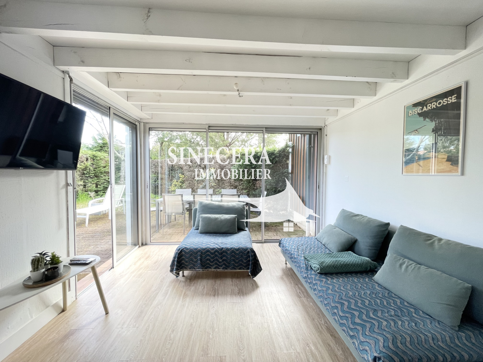Biscarrosse lac, à quelques pas des plages de Navarrosse et dans un environnement calme et privilégié. Magnifique petite maison mitoyenne, entièrement refaite à neuf et décorée avec goûts. Au rez-de-chaussée, une entrée avec placards, salle d'eau avec wc, superbe cuisine Ixina neuve spacieuse et entièrement équipée ouverte sur séjour avec double baie vitrée exposée sud-est. A l'étage, deux chambres lumineuses et spacieuses.