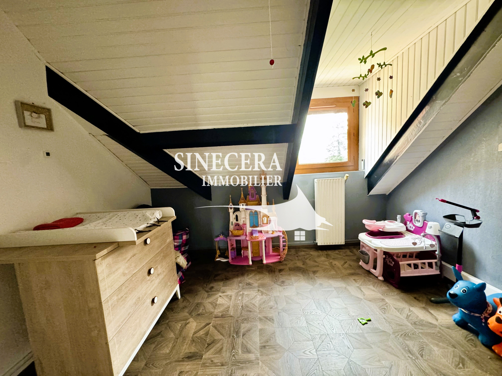 A l'étage, se trouve un grand palier, 4 chambres, une salle d'eau et un wc séparé.