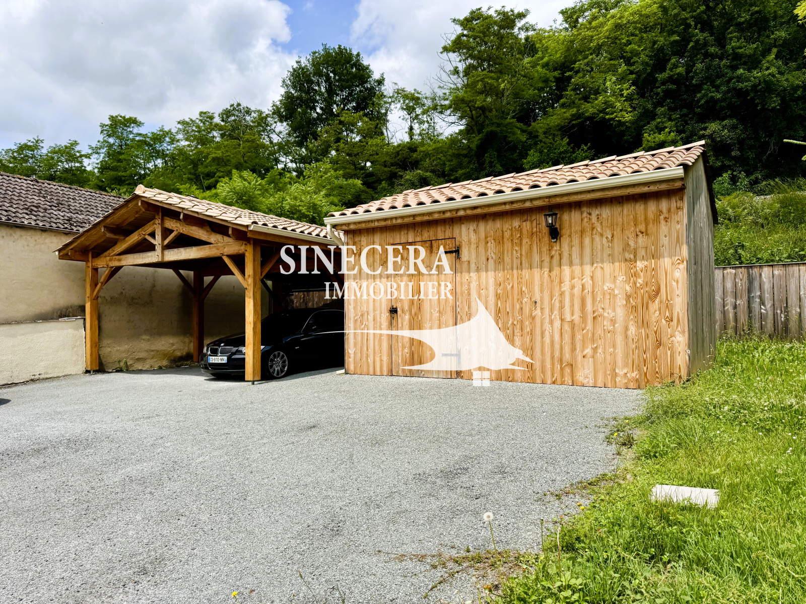 A l'exterieur il y a un carport pour deux véhicules, un chalet d'environ 20m², petite dépendance sur l'arrière et un terrain tout autour de la maison.