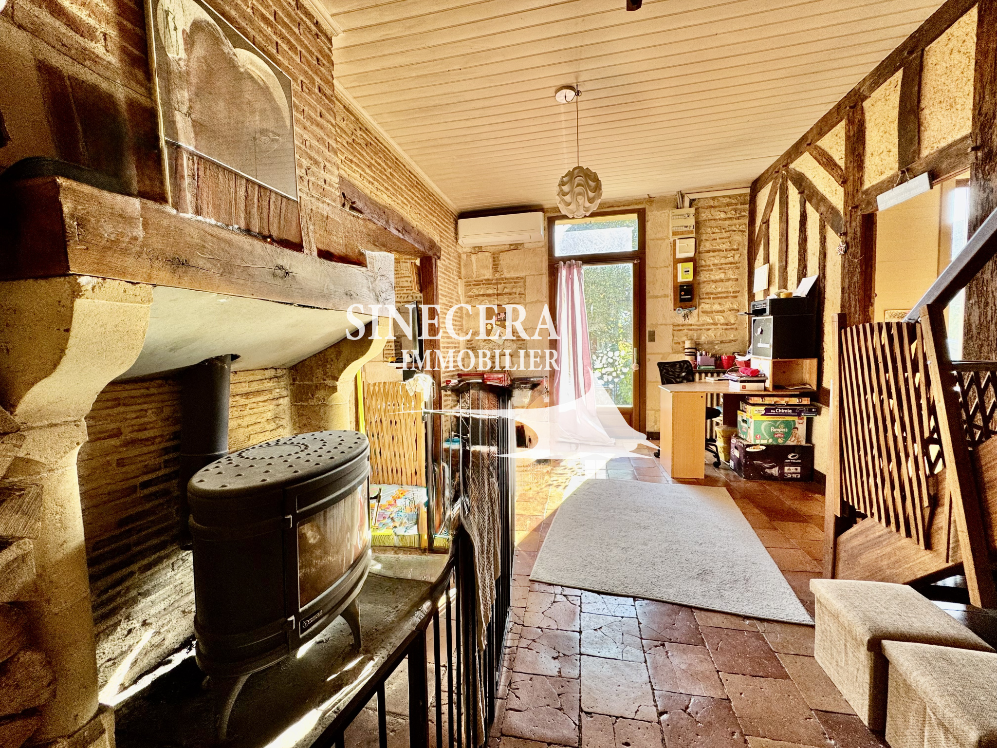 Puits, pompe à chaleur récente, poele à bois et climatisation réversible viennent compléter cette maison pleine de charme.